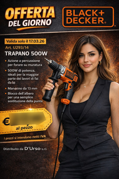 📌 Art. U293/14🔧 TRAPANO 500W BLACK+DECKERPotente, pratico e perfetto per i lavori di fai da te.✅ Azione a percussione per forare su muratura✅ 500W di...