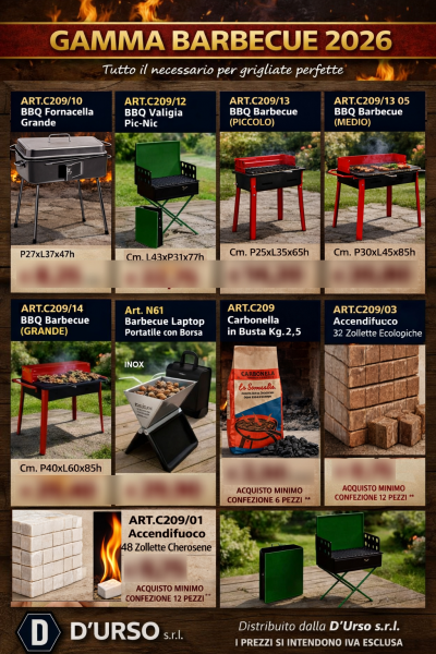 Tutto il necessario per grigliate perfette è arrivato da D’Urso s.r.l. Barbecue di varie misure, modelli portatili, carbonella e accendifuoco...