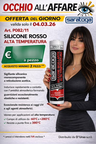 📅 Valida solo il 04.03.26 Art. P082/11Silicone Rosso Alta Temperatura – Saratoga📦 Acquisto minimo 2 pezziSigillante siliconico...