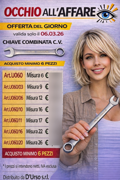 Solo per oggi 06.03.26 super occasione su Chiavi Combinate C.V. in acciaio Chrome Vanadium. Disponibili varie misure: 🔧 Misura 6 → € 🔧...