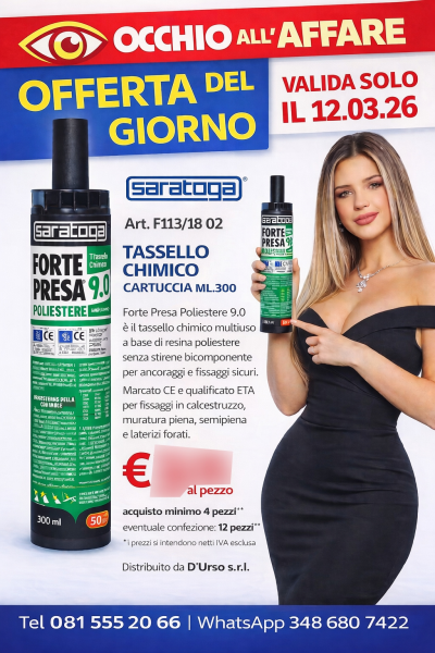 Saratoga – Tassello Chimico Cartuccia ML 300 Art. F113/18 02 Forte Presa Poliestere 9.0 è il tassello chimico multiuso a base di resina...