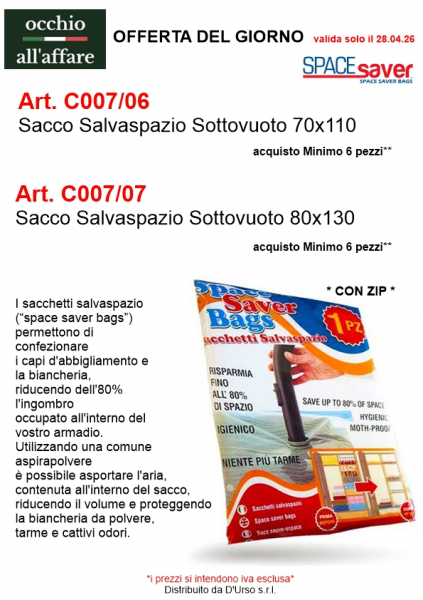 Sacco Salvaspazio Sottovuoto ✅ Art. C007/06Misura 70x110 cm ✅ Art. C007/07Misura 80x130 cm I sacchi salvaspazio sottovuoto permettono di conservare capi...