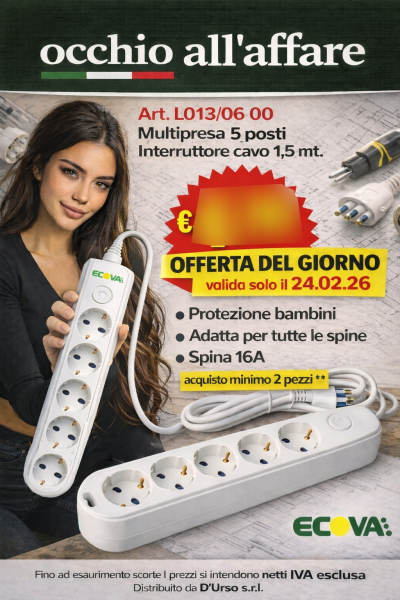 Multipresa 5 posti con interruttore, cavo 1,5 mt.